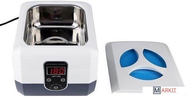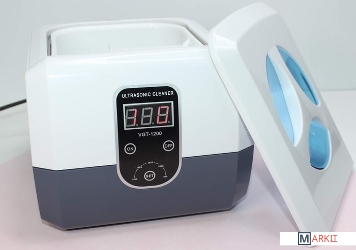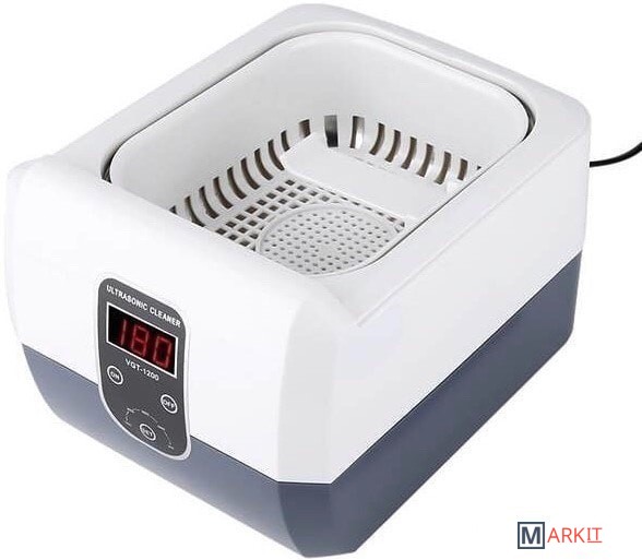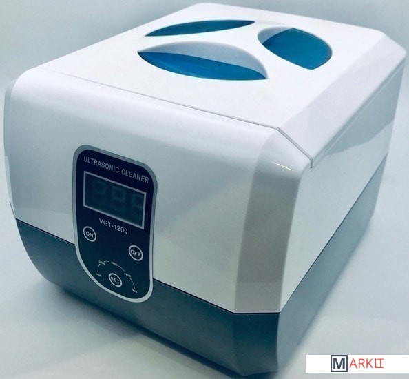 Мойка ультразвуковая VGT-1200 - прибор имеющий влагозащищенный изолированный корпус. Дополнительно мойка оснащена цифровым таймером на 5 режимов с функцией памяти. Крышка оснащена синим светодиодом. Антистатическое исполнение. Цифровой индикатор отображает мощность и время работы.Ультразвуковая мойка имеет большой резервуар объемом 1.3 л, который позволяет одновременно обрабатывать большое количество инструментов. Сам резервуар выполнен из нержавеющей стали.Ультразвуковая частота 40000 Гц.Мойка из нержавеющей стали SUS304.5 циклов с цифровым отображением времени 90, 180, 280, 380 и 480 секунд. Внешний размер (ДxШxВ): 228 x 183 x 158 мм. Размер бака (ДxШxВ): 175 x 145 x 70 мм. Вес 1.75 кг.