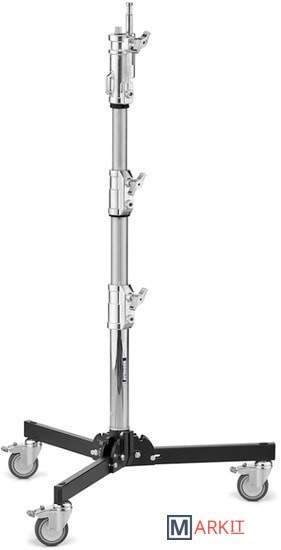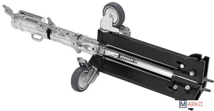 Стойка на колесах Avenger с 3 алюминиевыми секциями и 2 фиксаторами, а также стальными ногами и центральной колонной. Способна выдержать нагрузку до 25 кг, максимальная рабочая высота - 1.2 м. Стойка снабжена колесами, ее ноги складываются для удобства транспортировки.