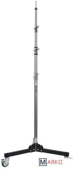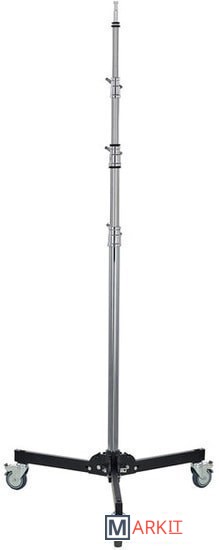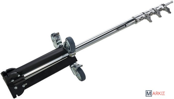 Стойка на колесах Avenger с 4 алюминиевыми секциями и 3 фиксаторами, а также стальными ногами и центральной колонной. Способна выдержать нагрузку до 12 кг, максимальная рабочая высота - 3.3 м. Стойка снабжена колесами, ее ноги складываются для удобства транспортировки.