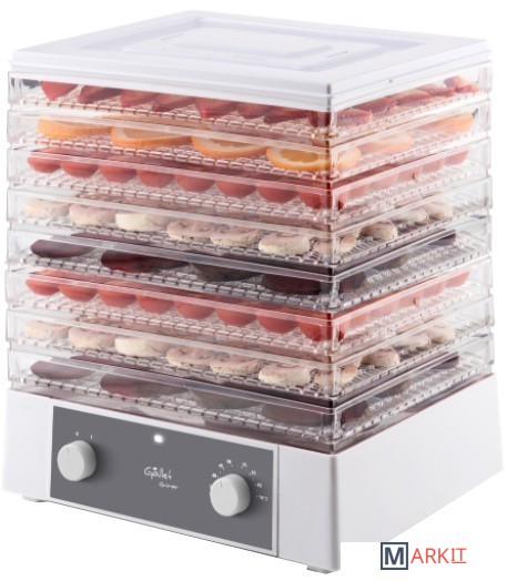 Сушилка для домашних продуктов с прозрачными сушильными экранами и бесступенчатой регулировкой температуры, 250 Вт, с низким энергопотреблением.Активная площадь сушки - 0,60 м2Защита от перегрева и световая сигнализация.