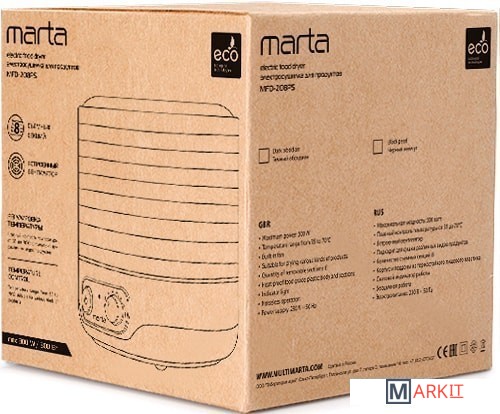Markit » Сушилки для овощей и фруктов » Сушилка для овощей и фруктов Marta MFD-208PS (черный жемчуг)