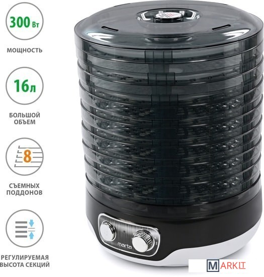 Markit » Сушилки для овощей и фруктов » Сушилка для овощей и фруктов Marta MFD-208PS (темный обсидиан)