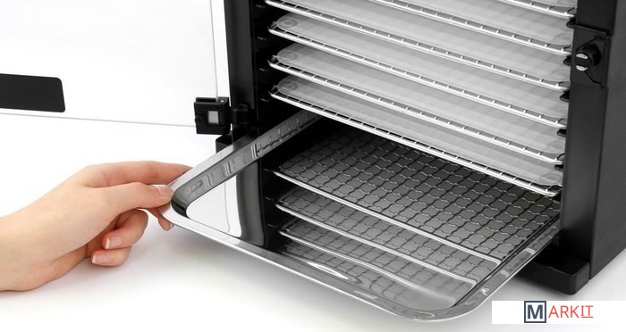 | Комплектация | 11 мелкосетчатых лотков из нержавеющей стали1 поднос из нержавеющей стали для крошек1 съемный шнур питания1 инструкция по эксплуатации1 многоразовый воздушный фильтр |