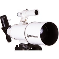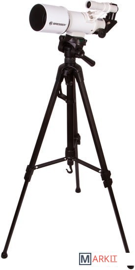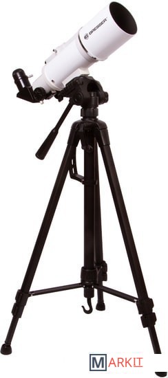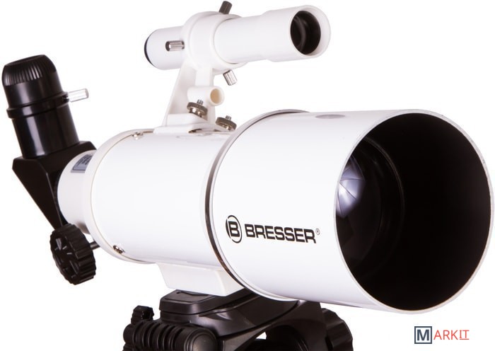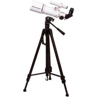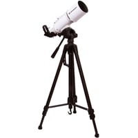 Этим телескопом можно изучать ближний космос и наземные объекты. Эта модель интересна богатой комплектацией – здесь есть даже держатель для смартфона, который позволит заниматься астрофотографией. Оптическая труба телескопа установлена на азимутальную монтировку. Она снабжена ручкой управления, которая упрощает процесс наведения. Сама труба достаточно небольшая, так как фокусное расстояние телескопа составляет всего 350 мм. Диаметр объектива – 70 мм, поэтому в телескоп хорошо видны сильно удаленные наземные объекты, Луна, планеты земной группы и отдельные яркие объекты дальнего космоса.