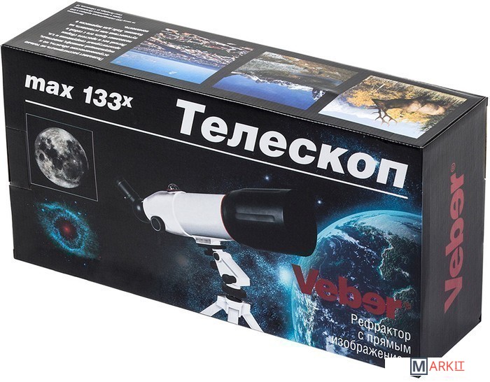 Телескоп очень компактный и очень светосильный. Он оптимален как для дальних поездок на природу так и для домашних наблюдений. Окуляр с призмой Шмидта дает прямое незеркальное изображение.