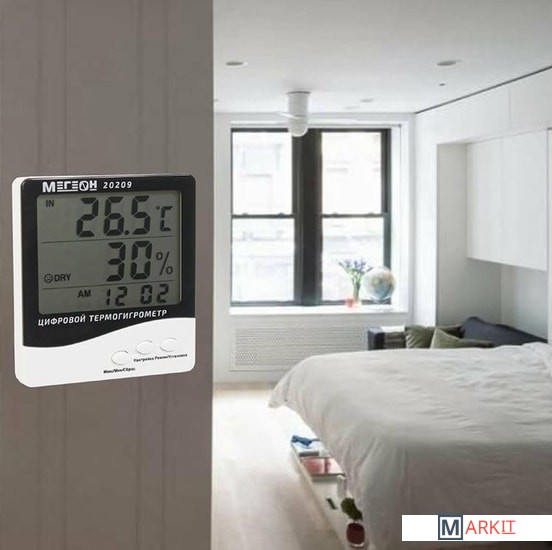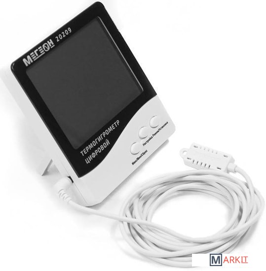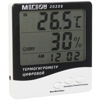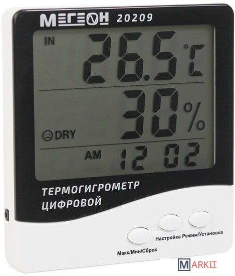 Цифровой термогигрометр МЕГЕОН 20209 представляет собой двухзонный электронный термометр совмещенный с цифровым гигрометром. Прибор оснащен большим высококонтрастным жидкокристаллическим дисплеем, на котором одновременно отображаются температура, влажность и текущее время, а использование современной элементной базы позволило достичь высокой точности измерений температуры и влажности. Благодаря современному эргономичному дизайну термогигрометр идеально впишется в интерьер любого дома, а функция фиксации минимального/максимального значений температуры будет полезной при использовании прибора в загородных домах и складских помещениях.