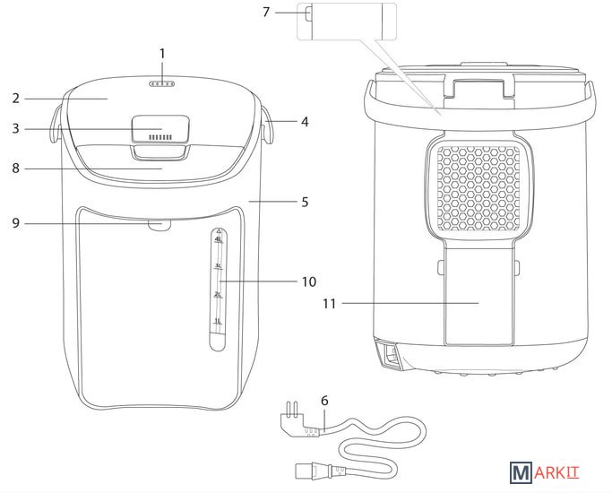 Работает как от электрической сети, так и от батареи со сменными элементами питания.* Элементы питания (батарейки) не входят в базовую комплектацию и приобретаются отдельно.Защита от поражения электротоком: класс IЗащита от перегреваРежимы работы:- кипячение- нагрев без кипячения- подогрев: 45-90 °С (с шагом 5 °С)- охлаждениеНагревательный элемент: дисковыйОхлаждающий вентилятор: скрытыйКрышка: съемнаяДисплей: светодиодныйАвтоотключение:- при отсутствии воды- при перегреве