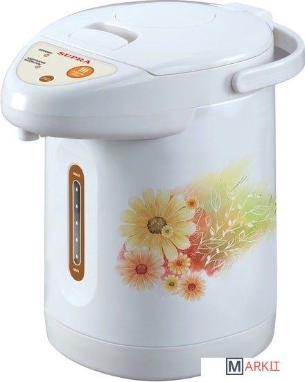 TPS-3001 входит в яркую дизайнерскую линейку оригинальных термопотов SUPRA, украшенных неповторимыми рисунками на корпусе. За стильной оболочкой скрывается уверенный в себе, умелый работник, готовый выполнять свои обязанности с большим энтузиазмом. Мощный (760 Вт) нагревательный элемент быстро подготовит во внутренней камере из нержавеющей стали 3 литра кипятка. Путь к вашей чашке кипяток пройдет с помощью электрического или механического насоса (на ваш выбор), попутно пройдя очистку внутренним фильтром. Ваш будущий чай или кофе всегда будет горячим благодаря автоматической функции повторного кипячения, а следить, чтобы кипятка хватило на всех, поможет индикатор уровня воды. Хотя перевести на него взгляд, оторвавшись от созерцания дизайнерской расцветки термопота SUPRA, будет непросто.