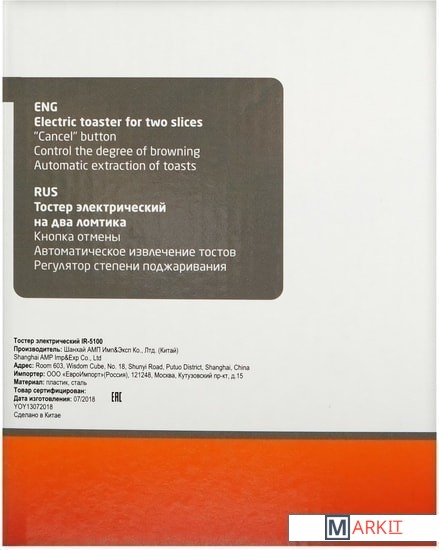| Количество тостов | 2 |