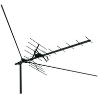 Антенна телевизионная наружная предназначена для стационарного приема сигналов аналогового и цифрового вещательного телевидения в диапазоне частот 48,5 – 100 МГц, 174-230Мгц, 470-862 МГц (1-12, 21-69 ТВ каналы).Конструктивно представляет собой антенну типа «волновой канал» дециметрового диапазона с узлом крепления вибраторов метрового диапазона. Вибраторы метрового диапазона крепятся под углом 120 градусов. Для установки антенны на мачту имеется узел крепления (скоба с зажимом).Дальность и качество приема зависят от места установки антенны, высоты её подвеса, мощности телевизионного передатчика, высоты подвеса передающей антенны, рельефа местности и ряда других факторов. Рекомендуется установка на удалении до 80 км от передающего центра.