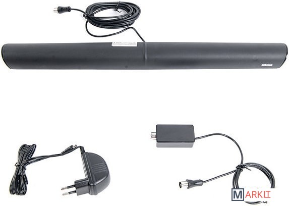 Телевизионная комнатная антенна «Сигнал» SAI-110 для просмотра цифрового и аналогового телевидения выполнена из пластика. Данную антенну можно разместить прямо на верхнюю панель телевизора. Принимает сигнал в диапазонах МВ и ДМВ, DVB-T, DVB-T2. Частота приема сигнала МВ (174-230)MHz / ДМВ (470-862)MHz. Антенна по типу усиления активная. Имеет встроенный усилитель, поэтому обладает отличным приемом сигнала, как в горизонтальной, так и в вертикальной плоскости. Коэффициент усиления составляет 20db. Питание от блока питания 6V/100mA, длина кабеля составляет 3м, размер антенны 432х68х35мм.