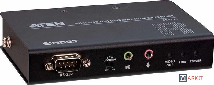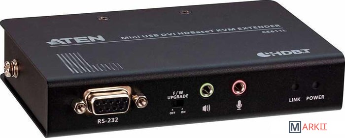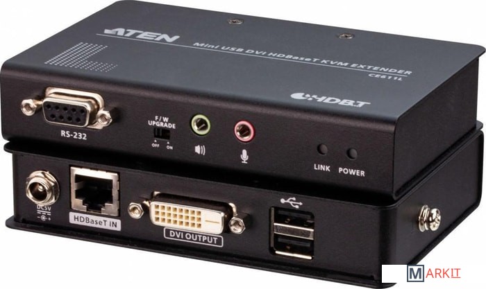 KVM-удлинитель CE611, поддерживающий новейшую технологию HDBaseT™, позволяет с помощью одного кабеля Cat6/6a/ATEN 2L-2910 Cat 6 передавать на расстояние до 100 метров DVI-видео с разрешением 1920x1200, стерео-звук, а также USB и RS-232 сигналы. Обладая компактным форм-фактором, включая звуковой и DVI-интерфейсы, высокоскоростные порты USB 2.0 и работу с последовательной консолью, данный удлинитель удовлетворит большинство требований к удаленному KVM-управлению и доступу к консоли. Благодаря простой установке кабеля и поддержке различных типов сигналов KVM-удлинитель CE611 идеально подходит для решений, где требуется подходящий удаленный доступ, например: центры управления транспортом, медицинские учреждения, промышленные склады и удаленные рабочие станции.