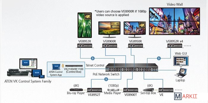 Приемник ATEN VE8952R 4K HDMI over IP с PoE обеспечивает передачу AV-сигналов 4K без визуальных потерь с низкой задержкой на большие расстояния через стандартную гигабитную сеть.