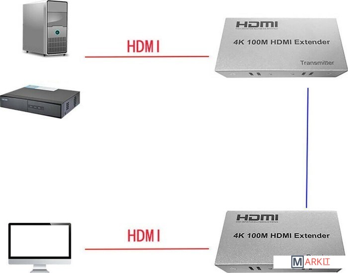 Markit » Кабели, адаптеры, разветвители » Удлинитель USBTOP HDMI UltraHD 4K активный на 100м по витой паре RJ45, комплект