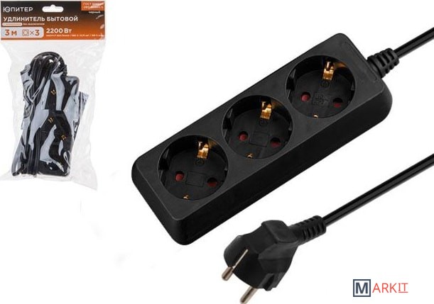 Удлинитель ЮПИТЕР изготовлен только из качественных материалов в соответствии с ГОСТ60884-1 и предназначен для подключения бытовых электрических приборов к электрической сети переменного тока внутри помещения.Защитные шторки открываются нажатием только на две одновременно, что обеспечивает надежную защиту от случайного прикосновения к токоведущим частям (защита детей).Реальное сечение провода из чистой меди гарантирует работоспособность удлинителя при подключении нагрузки до 2200Вт.Латунная контактная группа для устойчивого электрического контакта между вилкой и розеткой.Присоединение проводов выполнено методом точечной сварки (в отличие от присоединения винтовыми зажимами), благодаря чему исключается возможность ослабления контактов в течение всего срока службы удлинителя.Удлинитель поставляется в индивидуальном прозрачном пакете с усиленным подвесом, на котором отображена вся необходимая информация.
