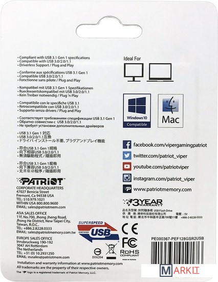 Markit » Флешки USB » USB Flash Patriot Rage 2 128GB (черный)