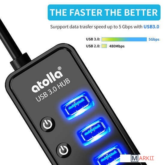 Markit » USB-хабы и док-станции » USB-хаб Atolla 7-Ports Powered 207G