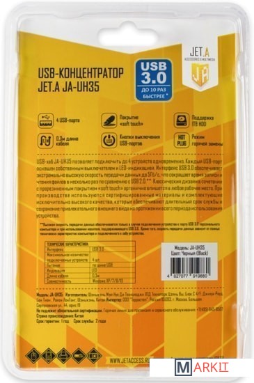 Markit » USB-хабы и док-станции » USB-хаб Jet.A JA-UH35 (черный)