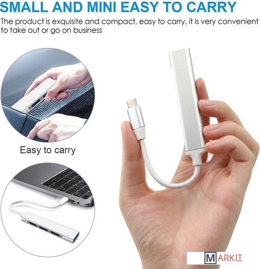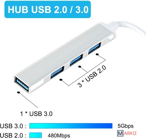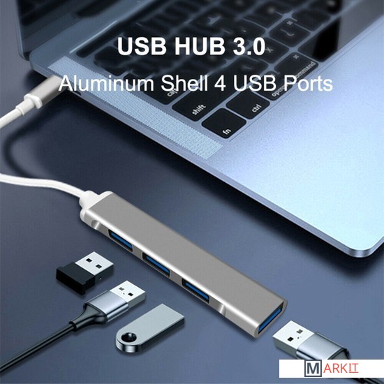 4-портовый USB-хаб в компактном алюминиевом корпусе, удобен в использовании с ноутбуком, планшетом и смартфоном.