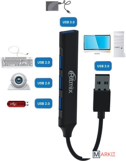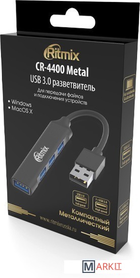 Markit » USB-хабы и док-станции » USB-хаб Ritmix CR-4400 Metal