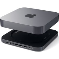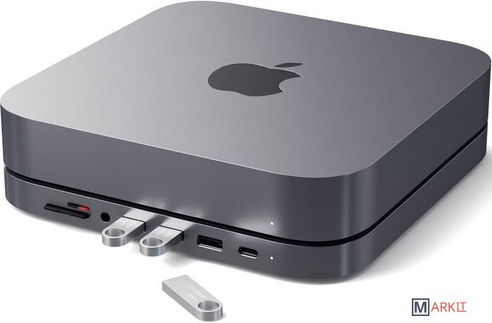 Устройство представляет собой компактный хаб-подставку, который предназначен для подключения к Mac Mini. Корпус выполнен из шлифованного алюминия, а верхняя часть имеет продуманную выемку, которая подходит для установки в нее Mac Mini.