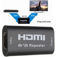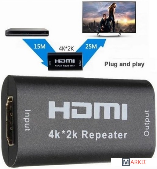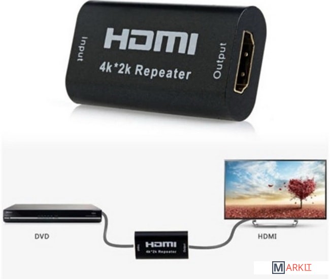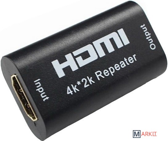 Репитер / повторитель сигнала HDMI используется для передачи сигнала HDMI на большее расстояние. Он ретрансирует входящий сигнал HDMI путем декодирования и перекодирования его на новый, таким образом, он может увеличить длину передачи без потери качества. Подходит для домашнего кинотеатра, мультимедийного проектора, игровых и теливизионных приставок, телевизора, ноутбука, компьютера и т.д. Не требует питания. Чем ниже передаваемое качество сигнала тем на большую дистанцию его можно передать
