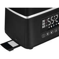 Увлажнитель серии Aura Ballu UHB-1500 - это уникальное сочетание современных технологий увлажнения воздуха, воплощенные в непревзойденном дизайне и гарантирующие исключительную атмосферу комфорта, свежести и уюта в вашем доме. Плавные линии корпуса моментально привлекают внимание, двухуровневая подсветка подчеркивает выразительный черный цвет прибора и придает дополнительную эстетичность его внешнему виду, а специальное покрытие soft touch обладает мягким и приятным тактильным эффектом при его касании. Безупречный комфорт с увлажнителем Aura гарантирован благодаря широкому набору интеллектуальных режимов, включая режим «теплого пара», 3 скоростей увлажнения воздуха, эргономичного пульта дистанционного управления, таймера и автоматического режима работы.ОсобенностиБольшой бак для воды вмещает в себя 7,5 литров, что обеспечивает непрерывное увлажнение в течение 21 часовБезопасное увлажнение в режиме теплого пара за счет нагрева воды до 80°С и ее пастеризацииВстроенная, отключаемая функция ионизации воздуха насыщает воздух полезными для здоровья аэроионамиИнтеллектуальные режимы работы: AUTO, BIO и НочнойТри скорости регулировки интенсивности увлажнения для эффективной работыБлокировка панели управления – защита от детей и от случайного сброса настроекУправление увлажнителем осуществляется как с помощью сенсорной панели управления, так и пультом ДУЯркий, контрастный дисплей в режиме реального времени позволяет отследить текущий уровень влажности, остаток воды в резервуаре, установленные режимы работыTimer на отключение (интервалы времени: 1-24 часов)Фильтр с ионнобменной смолой (AQUA фильтр) очищает водопроводную воду от солей жидкостиvМягкая двухуровневая подсветка резервуара и базы позволяет использовать прибор, в том числе как ночникВстроенная ароматическая капсула