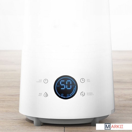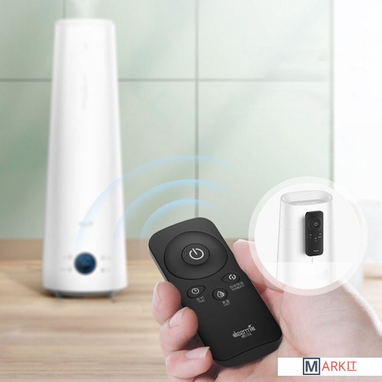 С октября 2021 года модель выпускается без функции Ароматизации.Увлажнитель воздуха от компании Deerma оснащен LED-дисплеем, на котором отображается полезная информация в режиме реального времени. Для управления на корпусе располагаются сенсорные клавиши: включения, автоматической поддержки влажности, регулировки интенсивности и таймера (до 12 часов).Также в комплекте имеется пульт дистанционного управления. Чтобы он не потерялся, предусмотрено магнитное крепление на самом увлажнителе Deerma.