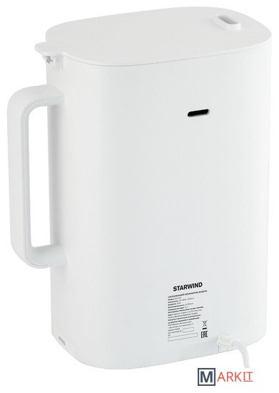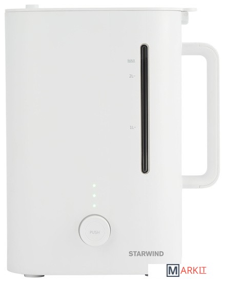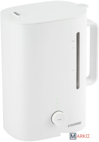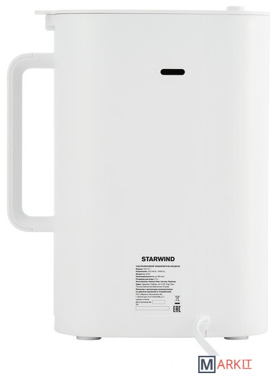Starwind SHC1211 – это компактный увлажнитель воздуха, который создаст в помещении комфортный климат.Воздух в квартире должен обладать определённым уровнем влажности, иначе это пагубно сказывается на состоянии слизистых и, в целом, на здоровье организма. Климат в помещении меняется от огромного количества факторов: включения и выключения отопления, погоды снаружи, качества работы вентиляции. Чтобы дома всегда было приятно находиться, ультразвуковой увлажнитель Starwind SHC1211 – идеальный вариант.Небольшой вес прибора и скромные габариты позволят найти место для него даже в маленькой квартире. При этом его мощность составляет 30 ватт, а производительности 300 мл/час хватит на постоянное поддержание влажности в помещении площадью 25 квадратных метров. Общий объём предусмотренного резервуара для жидкости в данной модели составляет 2,2 литра. То есть пополнять его при непрерывной работе не максимальной мощности нужно всего примерно раз в три часа.Стоит также отметить, что при высокой эффективности устройство работает на минимальной громкости. Уровень шума от него составляет всего 37 дБ.Для эргономичности и простоты использования на корпусе из белоснежного пластика Starwind SHC1211 предусмотрен минимум органов. Есть крышка с отверстием, которая поднимается для пополнения ёмкости, ручка, чтобы было удобно переставлять прибор, сетевой шнур, присоединенный к основанию, чтобы его нельзя было потерять и, конечно, кнопка активации. По её нажатию увлажнитель начинает работать и в считанные мгновения делает воздух в комнате приятнее для вдыхания. Поворот колесика клавиши устанавливает необходимый уровень влаги.Ухаживать за Starwind SHC1211 легко, ведь все его части выполнены из пластика. Это облегчает мытьё и подбор чистящих средств.