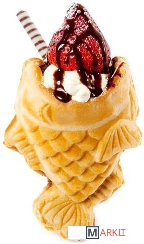 Вафельница тайяки позволяет выпекать вафли в виде рыбок, полых внутри и позволяющих использовать различные наполнители, в т.ч. мороженое.