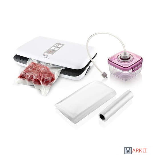 | Комплектация | Пакеты 25 х 30 см (10 шт.)Фольга длиной 5 м и шириной 25 смВакуумная коробка (объем 700 мл)Шланг |