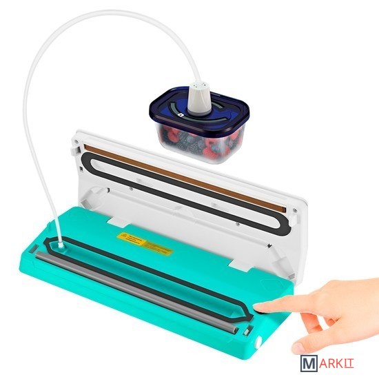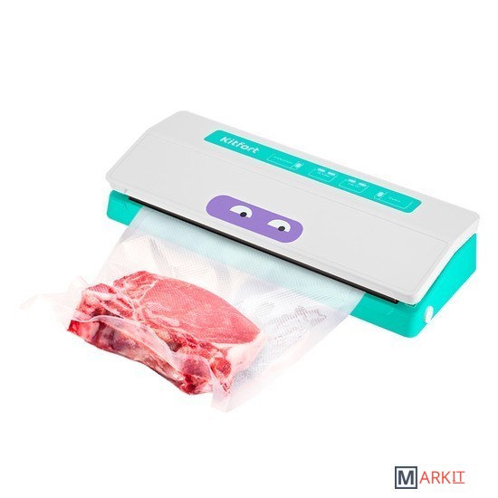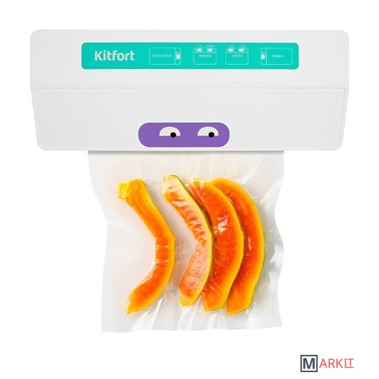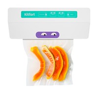 Вакууматор — устройство для вакуумной упаковки продуктов. Вакуумирование позволяет защитить от пыли, грязи, сохранить аромат и продлить сроки годности пищевых продуктов. Такой метод хранения уменьшает риск развития бактерий, которые появляются благодаря взаимодействию пищи с воздухом. Удаление воздуха из пакета гарантирует замедление процессов брожения, окисления и испарения, позволяя сохранить приятный внешний вид и качество самых разных продуктов питания.Вакууматор очень прост в использовании. Чтобы провести запаковку продукта, необходимо поместить его в специальный пакет, предназначенный для вакуумирования. Открытый край пакета укладывается в вакуумную камеру. После чего нужно закрыть крышку вакууматора и включить упаковку в автоматическом режиме. Вакууматор начинает выкачивать из пакета воздух. В результате образования вакуума пакет плотно обжимает содержимое. Как только воздух удален, начинается пайка открытой стороны пакета. В результате воздух уже не сможет проникнуть внутрь.Вакуумирование ускоряет засолку, маринование и мочение. В вакууме процесс обработки продуктов такими способами значительно ускоряется.Метод вакуумирования применяют не только в кулинарии, но и в других областях. Для туристических и бытовых нужд в вакуумный пакет можно поместить документы, деньги, спички, лекарства, мобильный телефон, карту, компас, чай и другие предметы. Охотники могут запаковать порох и патроны. Это защитит их от сырости и попадания воды. Серебряные украшения, коллекционные монеты, значки, упакованные таким способом, не будут тускнеть со временем.Вакуумная упаковка продуктов и вещей помогает значительно сэкономить место как в холодильнике, чемодане, так и по всей квартире. Пакеты с откачанным воздухом и сжатым содержимым занимают гораздо меньше пространства.В KT-1523 есть режимы для вакуумирования сухих, влажных или мягких продуктов. Прорезиненные ножки делают устройство более устойчивым и не дают скользить по столу во время работы.