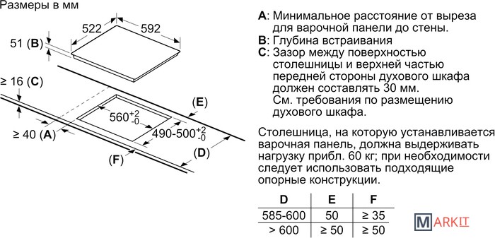| Размеры ниши для встраивания |