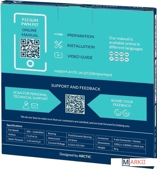 Markit » Системы охлаждения » Вентилятор для корпуса Arctic P12 Slim PWM PST ACFAN00187A