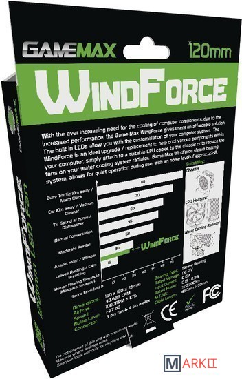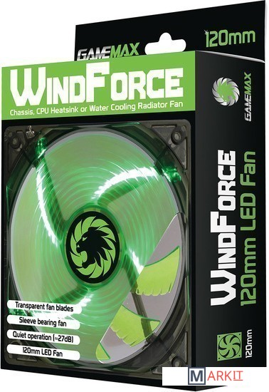 Markit » Системы охлаждения » Вентилятор для корпуса GameMax WindForce 4x Green LED (120 мм) [GMX-WF12G]