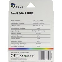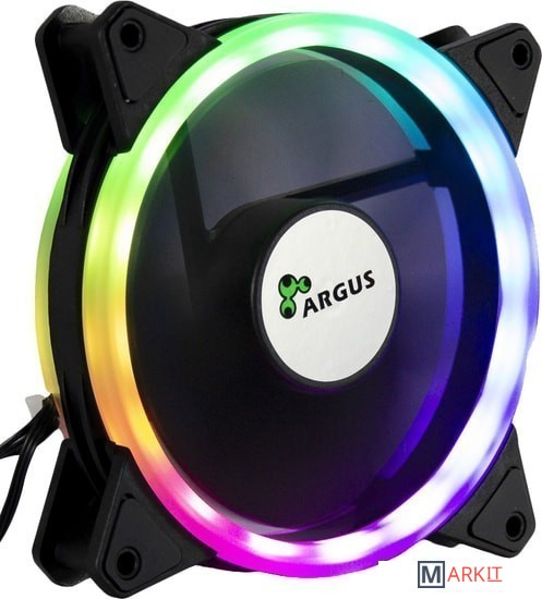 Светодиодный вентилятор от Argus с 16 ARGB-светодиодами, разделенными на два прозрачных кольца. Прорезиненные прокладки в углах вентилятора по обеим сторонам вентилятора обеспечивают работу без вибрации.