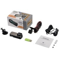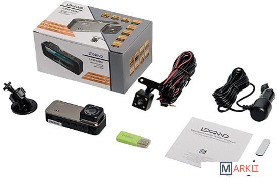 Видеорегистратор, выносная вторая камера, USB устройство для чтения TF-карт, крепление на присоске, автомобильное зарядное устройство, краткое руководство пользователя с гарантийным талоном