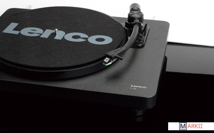 Данная модель имеет классический пассиковый привод от малошумящего двигателя, благодаря чему предотвращается передача вибраций на опорный диск. Сам диск имеет диаметр 300 мм. В проигрывателе используется электронное переключение скорости вращения пластинки 33 и 45 об/мин. На тонарме предустановлен MM-звукосниматель, положение которого полностью настроено на заводе.Предусмотрен также автоматический подъем тонарма по окончании воспроизведения последней композиции на пластинке. Это сокращает износ иглы в случае, если пользователь забудет это сделать вручную. При желании функцию автостопа можно отключить. Все органы управления проигрывателем сгруппированы на площадке под тонармом.Проигрыватель оснащен встроенным фонокорректором, поэтому его можно подключить к любому свободному линейному входу интегрального усилителя или AV-ресивера. При этом на задней панели Lenco L-30 имеются стандартные гнезда RCA аналогового выхода, поэтому меломан может выбрать любые подходящие соединительные кабели на свой вкус. Интересной дополнительной функцией в Lenco L-30 является встроенный ЦАП c USB-выходом, благодаря чему аналоговые записи с пластинок можно сохранить в виде файлов в памяти ПК.