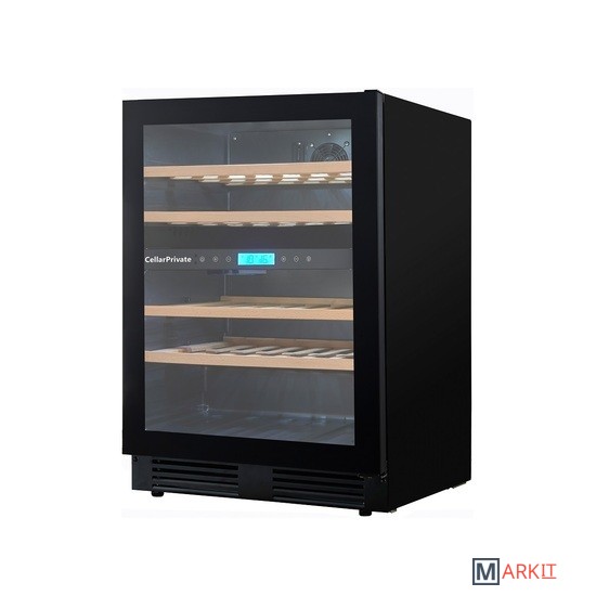 CellarPrivate CP043-2TBH это двухзонный холодильник для вина, вместимостью до 43 бутылок. Температура выставляется в каждой камере раздельно, что позволяет хранить одновременно красные и белые вина.Температура в верхней зоне настраивается от 5-12°С / в нижней 12-20°С.Сенсорные кнопки управления температурой и подсветкой расположены на панели за стеклянной дверцей.Данная модель винного шкафа оснащена компрессорной системой охлаждения, за счёт чего его можно использовать в достаточно тёплом помещении, при этом, он будет стабильно держать заданную температуру.CP042-2TBH можно встраивать под столешницу либо в любую нишу, также можно использовать и как отдельностоящий винный шкаф. Высота регулируется при помощи ножек до +7см.Постоянное проветривание бутылок обеспечивается бесшумными вентиляторами, установленными внутри камер это предотвращает появление посторонних запахов и образование плесени. CellarPrivate CP043-2TBH оснащён четырьмя деревянными съёмными полками, на которых с легкостью разместятся любые бутылки.