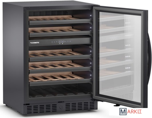 Благодаря холодильнику для вина Dometic E45FG с двумя температурными зонами наслаждайтесь насыщенным и многогранным вкусом вина. Он обеспечивает идеальные условия хранения для 45 бутылок вина, красиво расположенных на выдвижных полках за стеклянной дверцей без рамы, со светодиодной подсветкой с обеих сторон. Его фильтр с активированным углем и резервуар для воды создают идеальный микроклимат для хранения и выдержки вина, а система циркуляции воздуха обеспечивает равномерное поддержание температуры во всем шкафу. Просто установите в обеих температурных зонах рекомендуемую температуру подачи (например, 16 °C для красного вина и 8 °C для белого).