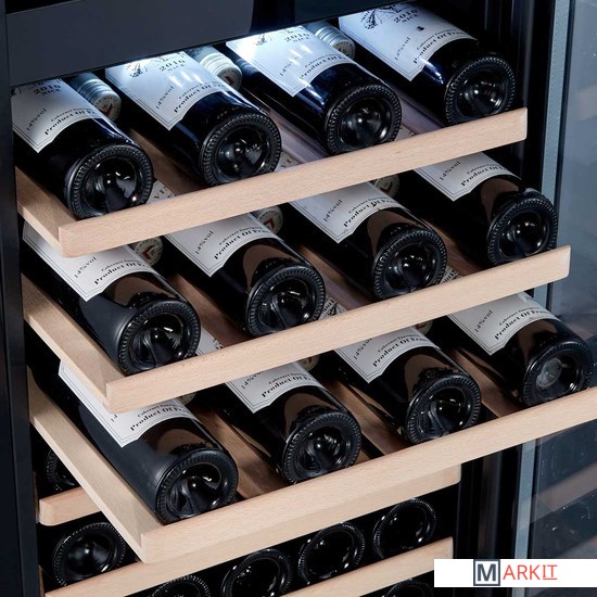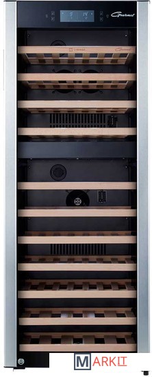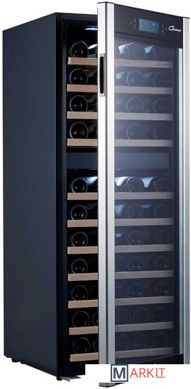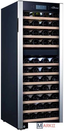 Двухзонный шкаф премиум класса GPD-73 может использоваться для охлаждения вина перед подачей, длительного хранения или созревания винной коллекции. Модель рассчитана на размещение в ней до 73 бутылок вина стандартного объема 0, 75 л. Современный компрессор обеспечивает низкий уровень вибраций. На полках из твердых пород дерева не образуется конденсат, что позволяет сохранить этикетки бутылок в первоначальном виде. Современное светодиодное освещение не является источником тепла и сохраняет электроэнергию. На двери установлен тонированный стеклопакет, препятствующий проникновению света и сохраняющий свойства благородного алкоголя. Сменный угольный фильтр служит для устранения посторонних запахов, проникающих внутрь холодильника через систему естественной вентиляции. Для предотвращения высыхания пробки в шкафу сохраняется влажность более 50%. Это позволяет бутылкам с вином храниться в течение долгих лет. Благодаря «зимнему» режиму прибор можно устанавливать даже в помещениях с низкой температурой. В таких случаях у винного шкафа включается режим подогрева камеры. Управление параметрами работы модели производится при помощи сенсорных кнопок и ЖК-дисплея с цифровой индикацией температуры.