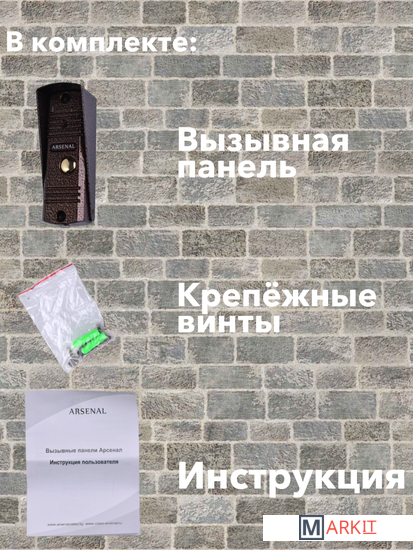 Арсенал Триумф - это надёжная антивандальная вызывная панель бренда Арсенал.Данная модель вызывной панели оснащена видеокамерой с узким углом обзора (68 градусов), ИК-подсветкой, динамиком и микрофоном. Металлический корпус хорошо защищает вызывную панель от ударов, влаги и пыли. Устройство способно работать при температурах от -40 до +50 градусов.Вызывная панель Арсенал Триумф совместима с домофонами от Arsenal. Она хорошо подойдёт для дома или квартиры, если Вы нуждаетесь в прочной и надёжной вызывной панели. Возможно соединение с подъездной домофонией, а также подключение электрозамка. Установка и подключение устройства не сложное: Вам понадобится кабель с 4 жилами и умение использовать перфоратор. Все остальные детали, необходимые для монтажа, идут в комплекте.