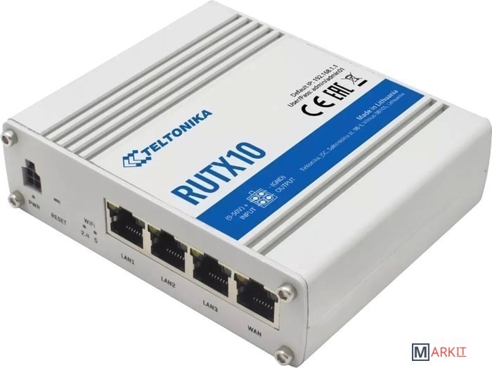 Teltonika RUTX10 - компактный всепогодный маршрутизатор, предназначенный для профессиональных инсталляций на объектах, требующих промышленного исполнения оборудования. Базируется на RutOS - кастомном системном ПО, созданном на основе OpenWrt. Оснащен 4-мя гигабитными портами RJ45 (1 x WAN, 3 x LAN), 2-диапазонным модулем WiFi 2.4 / 5 ГГц с поддержкой стандартов 802.11b/g/n/ac Wave 2, обеспечивающим скорость беспроводного подключения до 867 Мбит/с, модулем Bluetooth LE; поддерживает протоколы динамической маршрутизации (BGP, OSPF, RIP), VPN (OpenVPN, IPSec).Маршрутизатор может быть установлен в помещении и на улице, на автомобили, автобусы, грузовики и любые другие транспортные средства, в банкоматы, трубопроводы, электроподстанции и т. д.; поддерживается монтаж на DIN-рейку. Оснащен системой защиты от перенапряжений.Управление роутером можно осуществлять с помощью приложения для мобильного телефона - Teltonika Router. Кроме того, вся инфраструктура устройств Teltonika может управляться централизованно с помощью системы Teltonika Remote Management System.