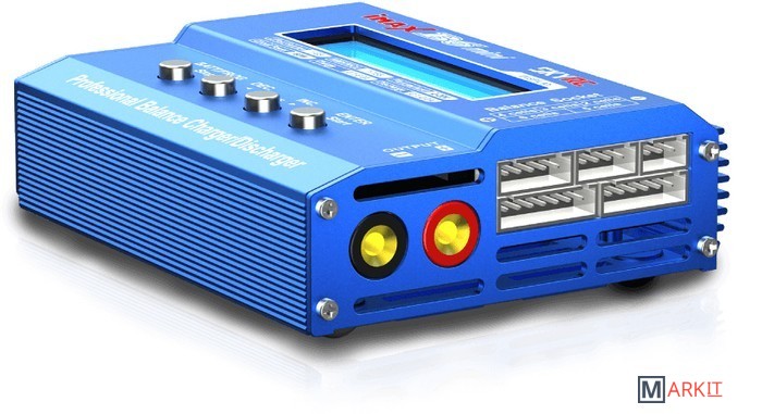 Особенности:Поддерживает любые типы аккумуляторовУправляется микропроцессоромОтдельная балансировка каждой банки LI-PO АКБШирокий диапазон тока зарядкиФункция ограничения по времени зарядаЗаряд/разряд до напряжения хранения литиевых аккумуляторовМониторинг входного напряжения (Защита переразряда аккумулятора вашего автомобиля на поле)Память параметров заряда/разряда для 5ти АКБВозможность подключить опциональный температурный сенсор (приобретается отдельно)Комплектация:- Зарядное устройство;- Кабель для подключения питания DC 5.5 + крокодилы;- Кабель с разъемами T-Plug + бананы;- Кабель с разъемами T-Plug + крокодилы;- Кабель с разъемами T-Plug + Futaba connector;- Кабель с разъемами T-Plug + JST connector;- Кабель с разъемами T-Plug + XT60 connector;- Инструкция на английском языке.