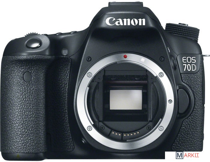 Неполнокадровый зеркальный цифровой аппарат, ориентированный на широкий круг пользователей. EOS 70D пришёл на смену сверхпопулярной модели EOS 60D: камера получила новую 20.2 Мп. CMOS-матрицу с кроп-фактором 1.6, с расширенным штатным диапазоном чувствительности: от 100 до 12800 ISO, 3” поворотный сенсорный дисплей. Камера может вести съемку со скоростью 7 кадров в секунду. Так же имеются модули Wi-Fi/NFC. Комплект с объективом Canon EF 50mm f/1.8 II.