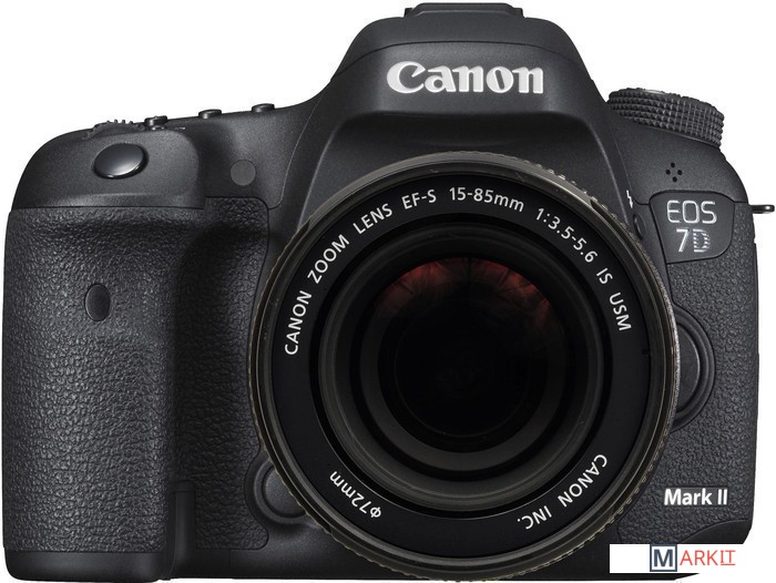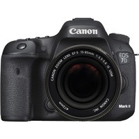 Неполнокадровый зеркальный цифровой аппарат, ориентированный на широкий круг пользователей. Преемник успешной модели EOS 7D. Фотоаппарат оснащен 20.2 Мп. CMOS-сенсором размером 22.4 х 15 мм и аппаратным диапазоном чувствительности ISO 100—16 000 с расширением до 51 200. За обработку фото отвечают два процессора Digic 6, корпус устройства выполнен из магниевого сплава и устойчив к воздействию пыли и влаги в виде дождя средней интенсивности. EOS 7D Mark II получила новую систему автофокусировки с 65 точками, 3-дюймовый дисплей с разрешением Full HD, видоискатель со 100-процентным покрытием кадра, встроенную фотовспышку, порт USB 3.0, а также разъемы для пульта ДУ, внешнего микрофона, наушников и карты памяти. Комплект с объективом Canon EF-S 15-85mm f/3.5-5.6 IS USM.