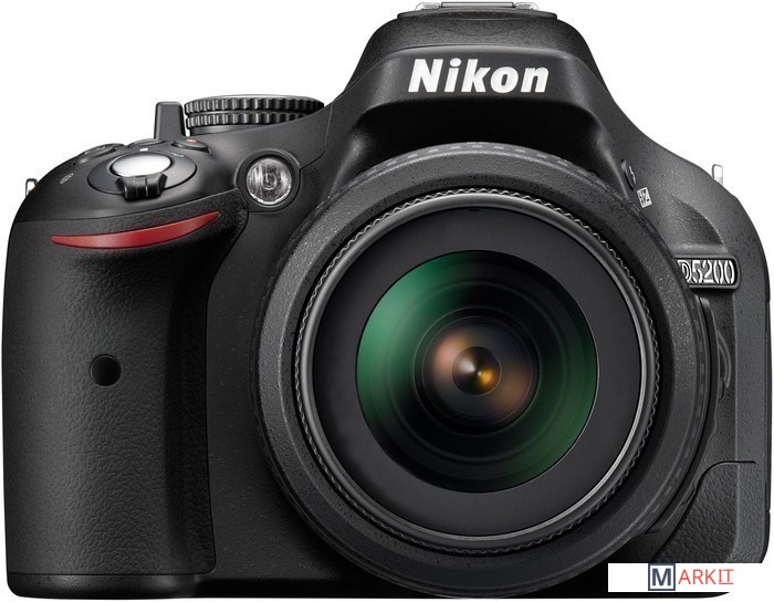Любительская неполнокадровая зеркальная камера начального уровня. Представляет собой развитие модели Nikon D5100. Особенность заключается в том, что ее автофокусная система, датчик экспозамера и технология распознавания сюжета были заимствованы у продвинутой зеркальной фотокамеры Nikon D7000. Автофокусная система D5200 включает 39 датчиков, в том числе 9 датчиков перекрестного типа. Камера получила 24.1 Мп CMOS–сенсор и 3” поворотный дисплее с разрешением 921000 пикселей. Комплект с объективом Nikon 18-105mm f/3.5-5.6G ED VR AF-S DX NIKKOR.