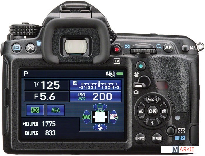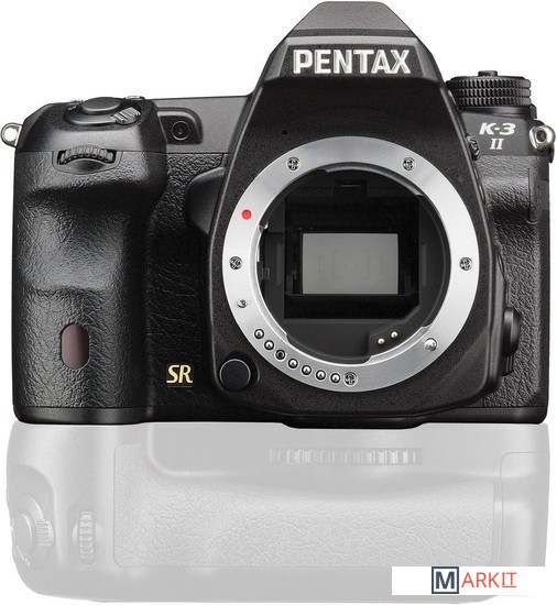 Среднеразмерная, влагозащищенная, зеркальная камера из магниевого сплава предназначенная для путешественников и «продвинутых» энтузиастов фотографии. Камера оснащена 24.35 Мп. CMOS-матрицей формата APS-C (23.5x15.6 мм) и графическим процессором PRIME III, который был использован в предыдущей моделе — K-3.Аппарат имеет 27-точечную систему автоматической фокусировки, где 25 точек крестообразные, скоростную серийную съемку 8.3 кадра/сек, систему стабилизации изображения Shake Reduction, оптический видоискатель со 100% покрытием кадра и 3.2” дисплей с разрешением 1037000 точек.Для записи снимков имеется 2 SD слота карт памяти. Один из которых можно использовать под беспроводные модули. В K-3 II применена новая технология Pixel Shift Resolution, которая позволяет увеличить четкость полученных изображений. Камера без встроенной вспышки. Комплект без объектива.