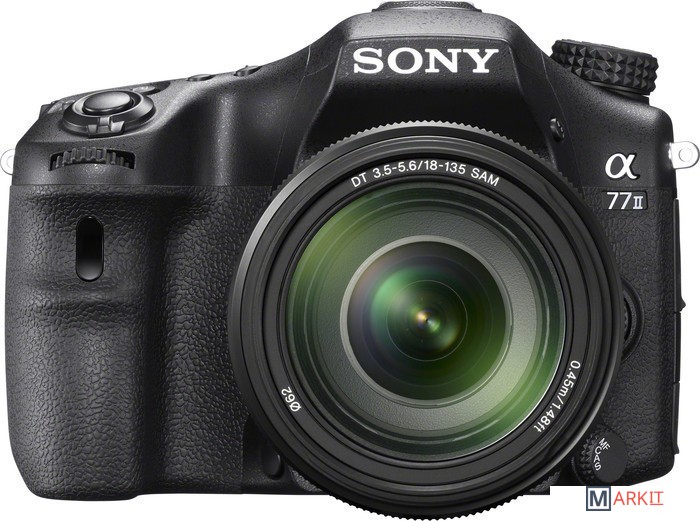 Зеркальный цифровой фотоаппарат для продвинутых пользователей. Вторая версия популярной у фотографов-энтузиастов камеры SLT-A77. Аппарат имеет похожий на предшественницу защищенный корпус из магниевого сплава, однако аппаратная часть подверглась изменениям: в камере используется 24.3 Мп CMOS-сенсор Exmor APS-C (23.5 х 15.6 мм) поддерживающий светочувствтельность в диапазоне 100 – 25 600 единиц ISO, а так же процессор BIONZ X. Камера получила 79-точечную систему автофокусировки с 15 крестообразными точками автофокуса. Скорость съемки составляет 12 кадров в секунду. Поворотный дисплей имеет прежний размер — 3”, однако разрешение возросло до 1229000 точек. Абсолютным новшеством стал Wi-Fi-модуль и NFC. Комплект с объективом Sony SAL-18135.